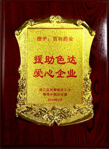 2010年8月,百利药业(集团)捐资定向用于四川省卫生厅“挂、包、帮”活动,重点扶持壤塘县蒲西乡大伊里村、尤日沟三年帮扶活动规划项目。