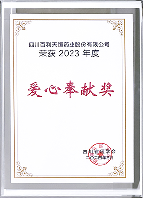 2016年和2017年,向四川省医药爱心扶贫基金会首批医疗爱心救助项目捐赠,荣获“爱心捐赠单位”称号。